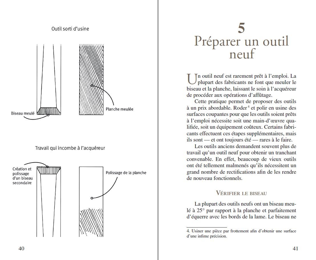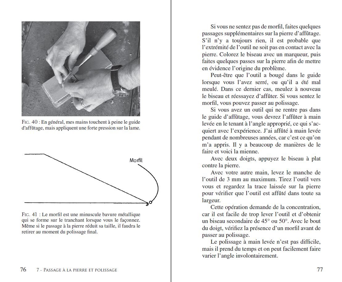 Dans ce livre, vous trouverez comment affûter un outil neuf ou non, réparer des lames ébréchées, changer la forme d’un tranchant, modifier l’angle du biseau et reprendre un biseau secondaire.
